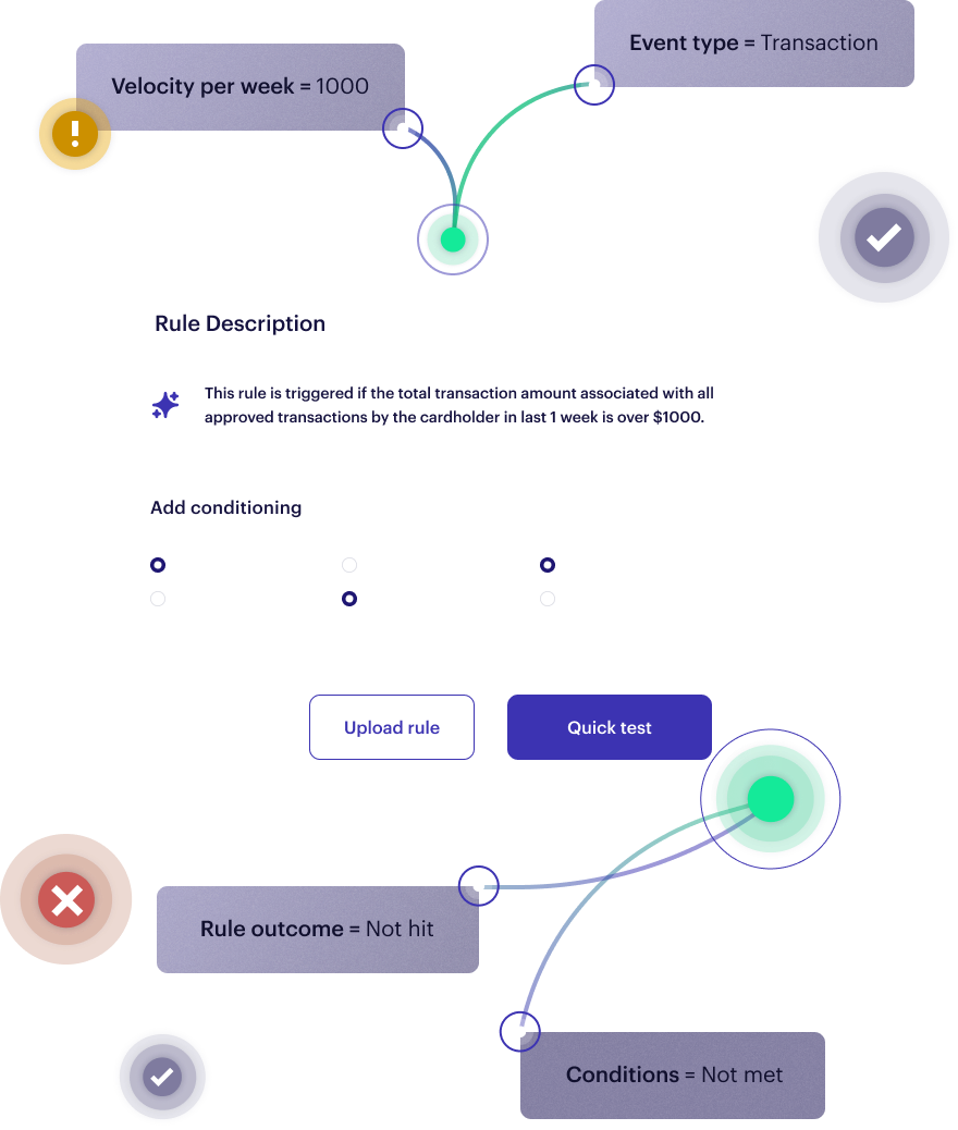 Create and implement rules for card transactions based upon your business logic and hundreds of data attributes